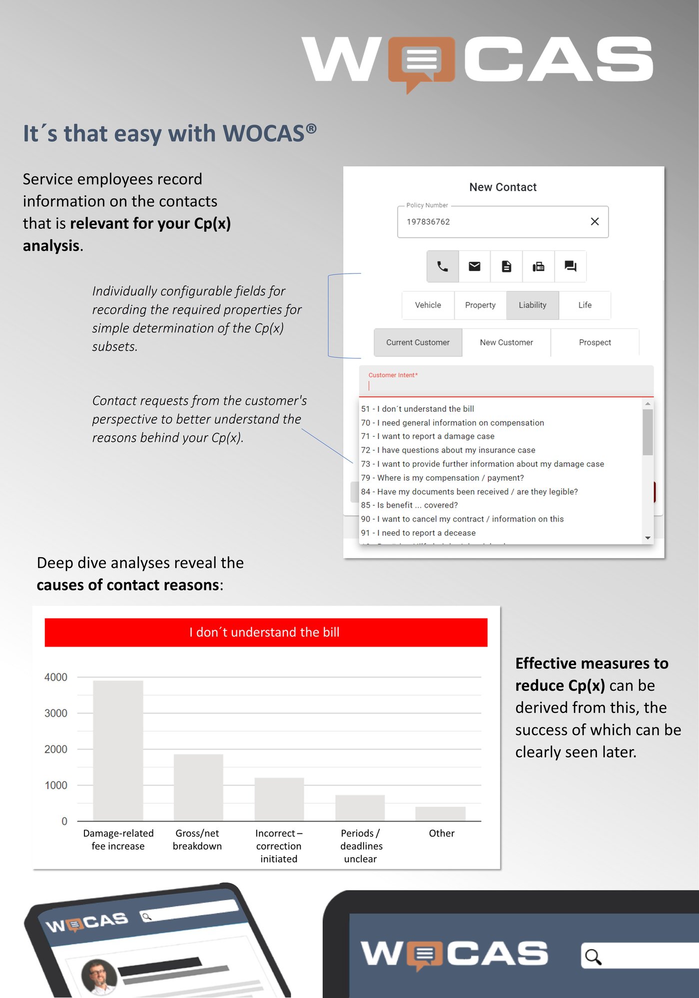 With WOCAS®, we offer you an optimal tool for linking contacts with the appropriate business volume (X). This is the basis for setting targets and the fields of action for achieving them.
