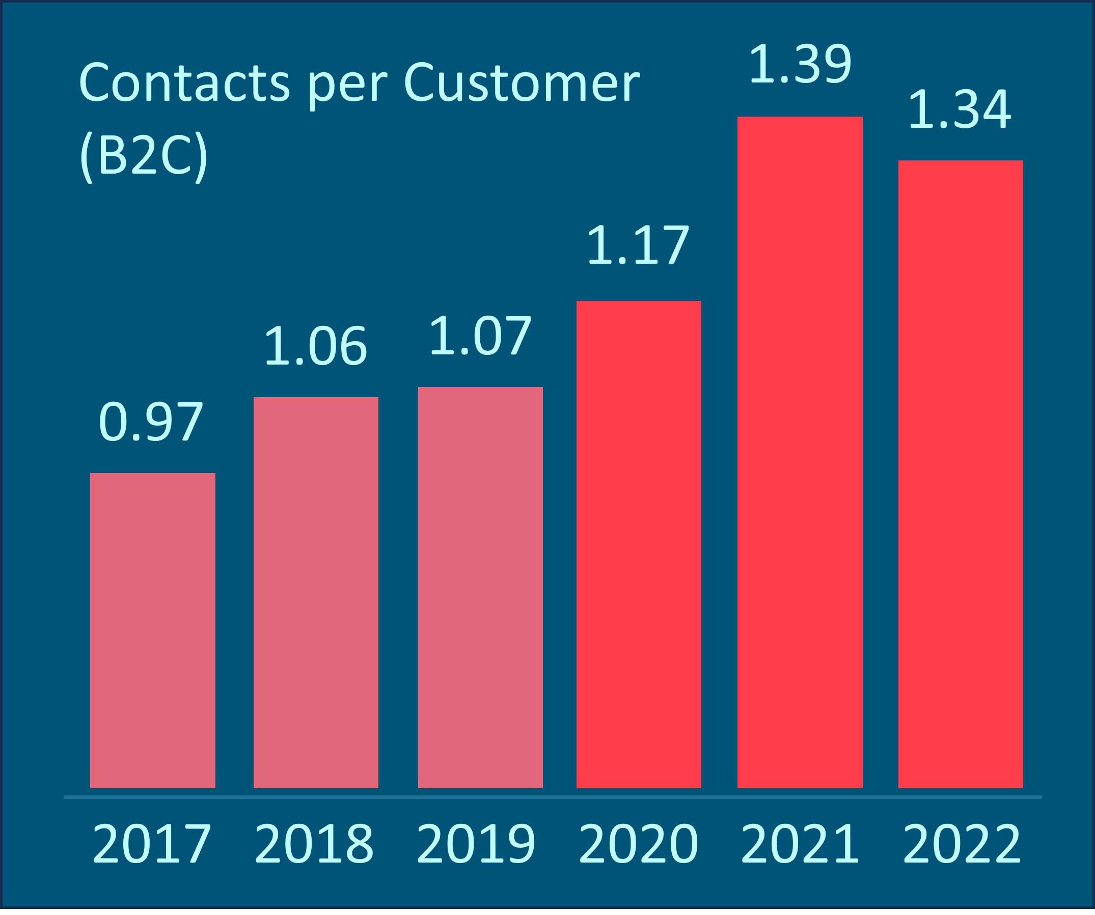 The Service Excellence Cockpit of FORWARD PARTNERS AG has confirmed a worrying trend that is more than alarming: A significant increase in contacts per customer over the last five years!